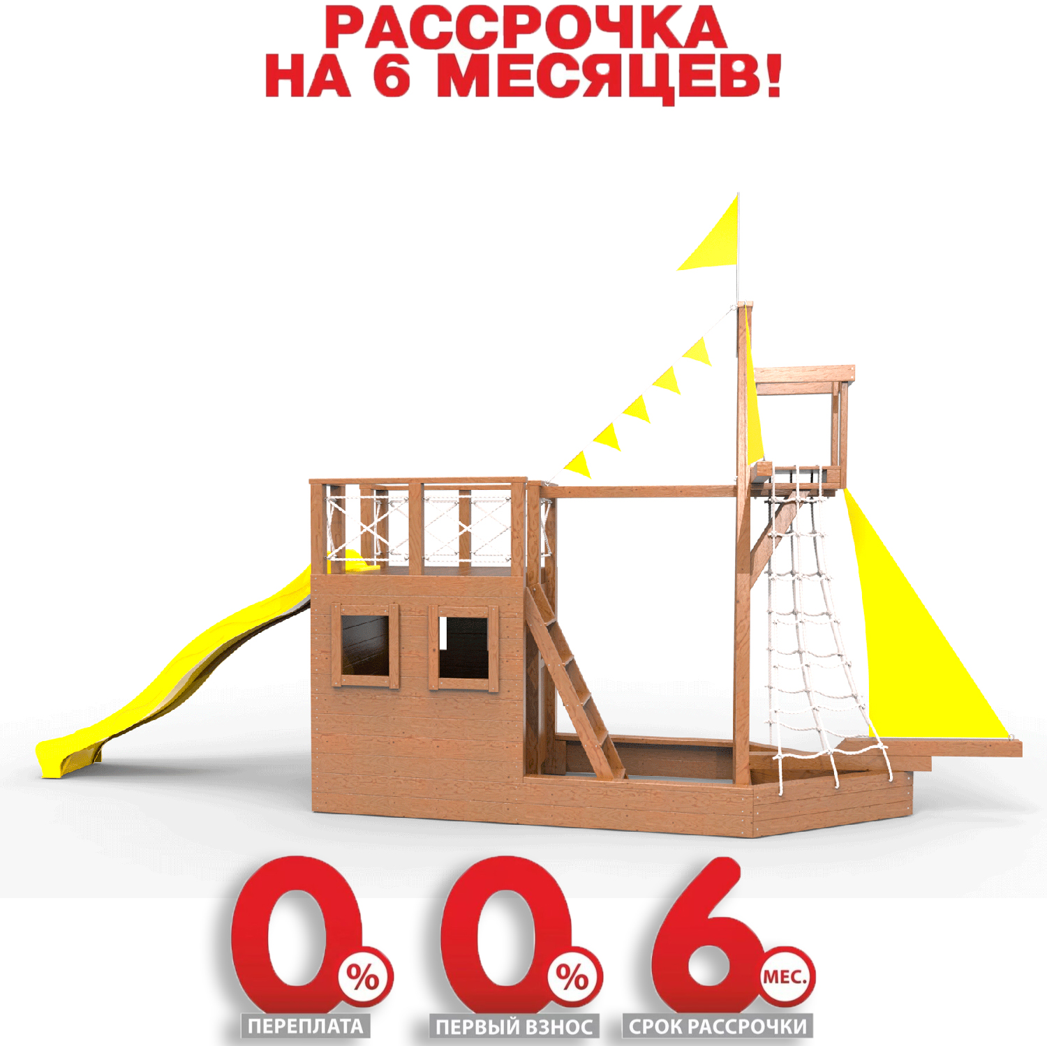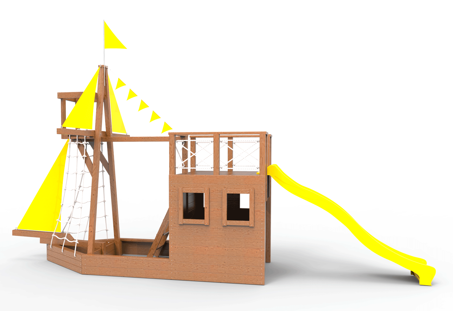 Только представьте корабль с парусами, наполняемыми ветром, с настоящей смотровой площадкой, штурвалом и уютной каютой - и все это в распоряжении вашего маленького путешественника. С такой площадкой малышу никогда не будет скучно, будь он пиратом, отважным капитаном или милой принцессой. Площадь корабля и его конструкция позволяет разыгрывать бесчисленное множество сценариев игр, а также Вы легко сможете дополнить детскую площадку спортивными и игровыми элементами, чтобы малышу стало еще веселее.