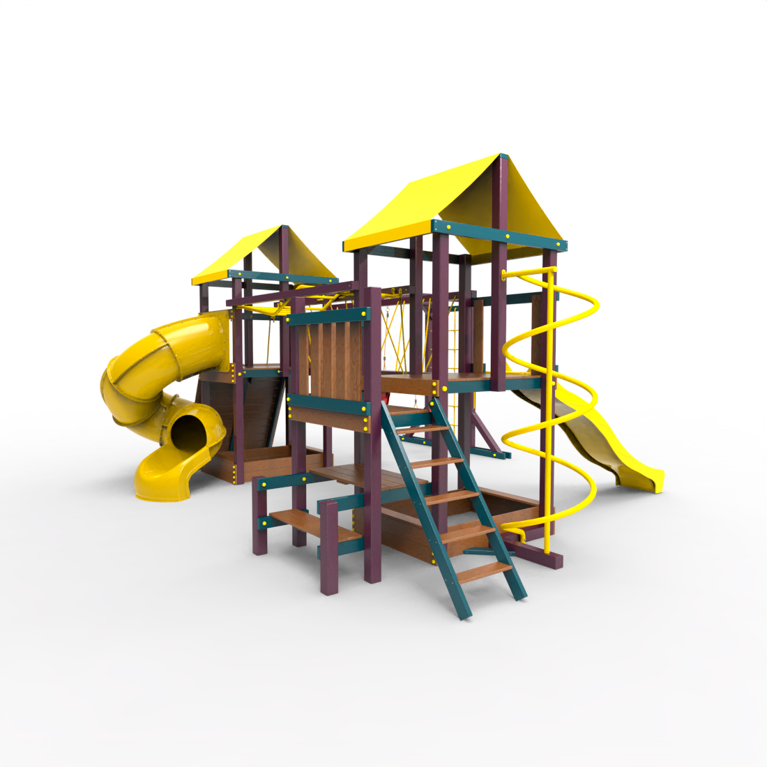 | Комплектация | Два домика|Песочница|Лестница|Шторм-трап|Скалодром|Рукоход|Руфер|Балкон|Столик с лавочками|Подвесной мост|Горка|Спираль|Сеть для лазания|Качели|Заливная горка|ЗигЗаг|Переправа |