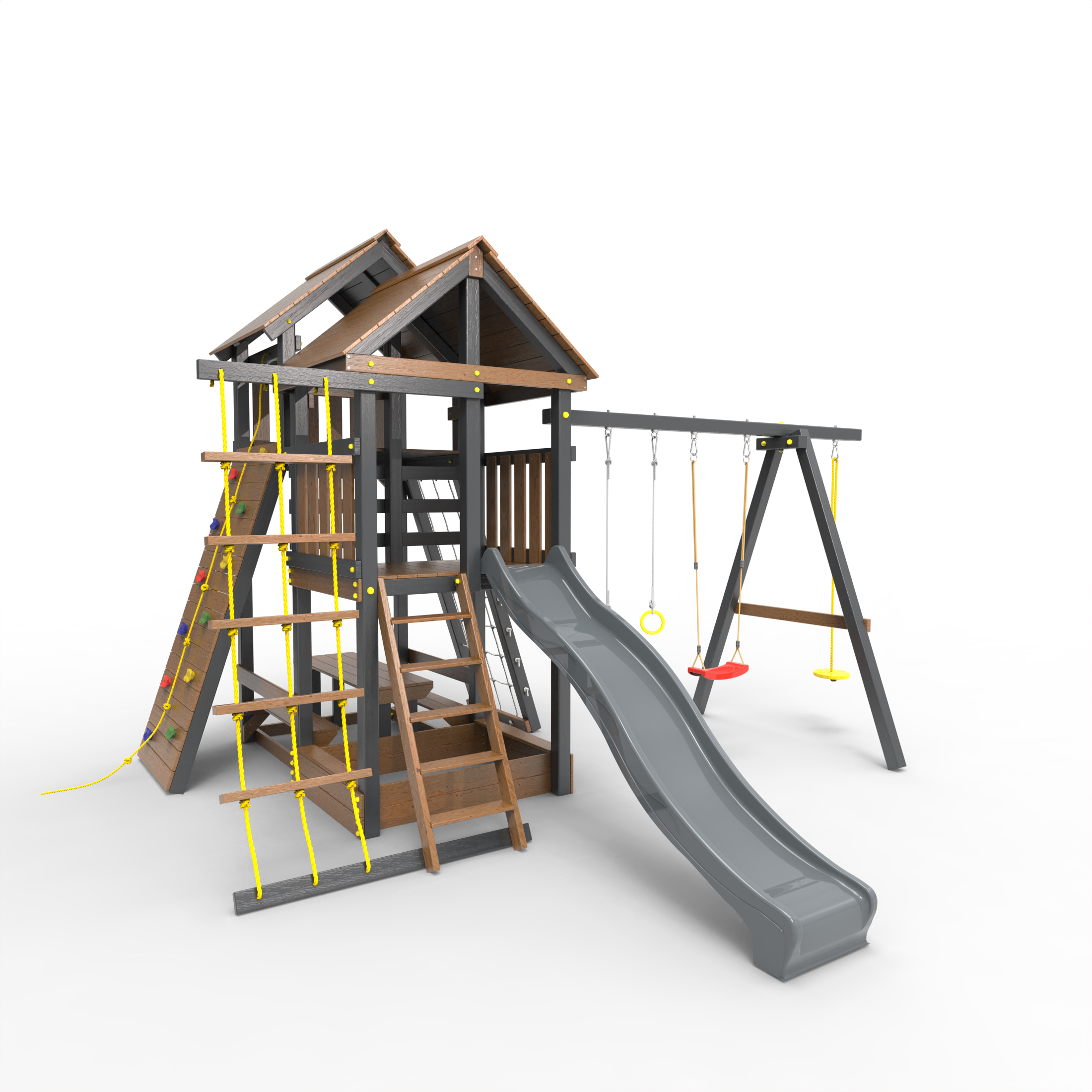 Обращаем Ваше внимание, что фактический цвет детской площадки может отличаться от представленных фото на сайте. Специфика окраски нетоксичными пропитками и красителями допускает отклонения в цветовой гамме отгружаемых изделий. Также обратите внимание, что фактический цвет может отличаться из-за цветопередачи устройства на котором Вы смотрите фото.