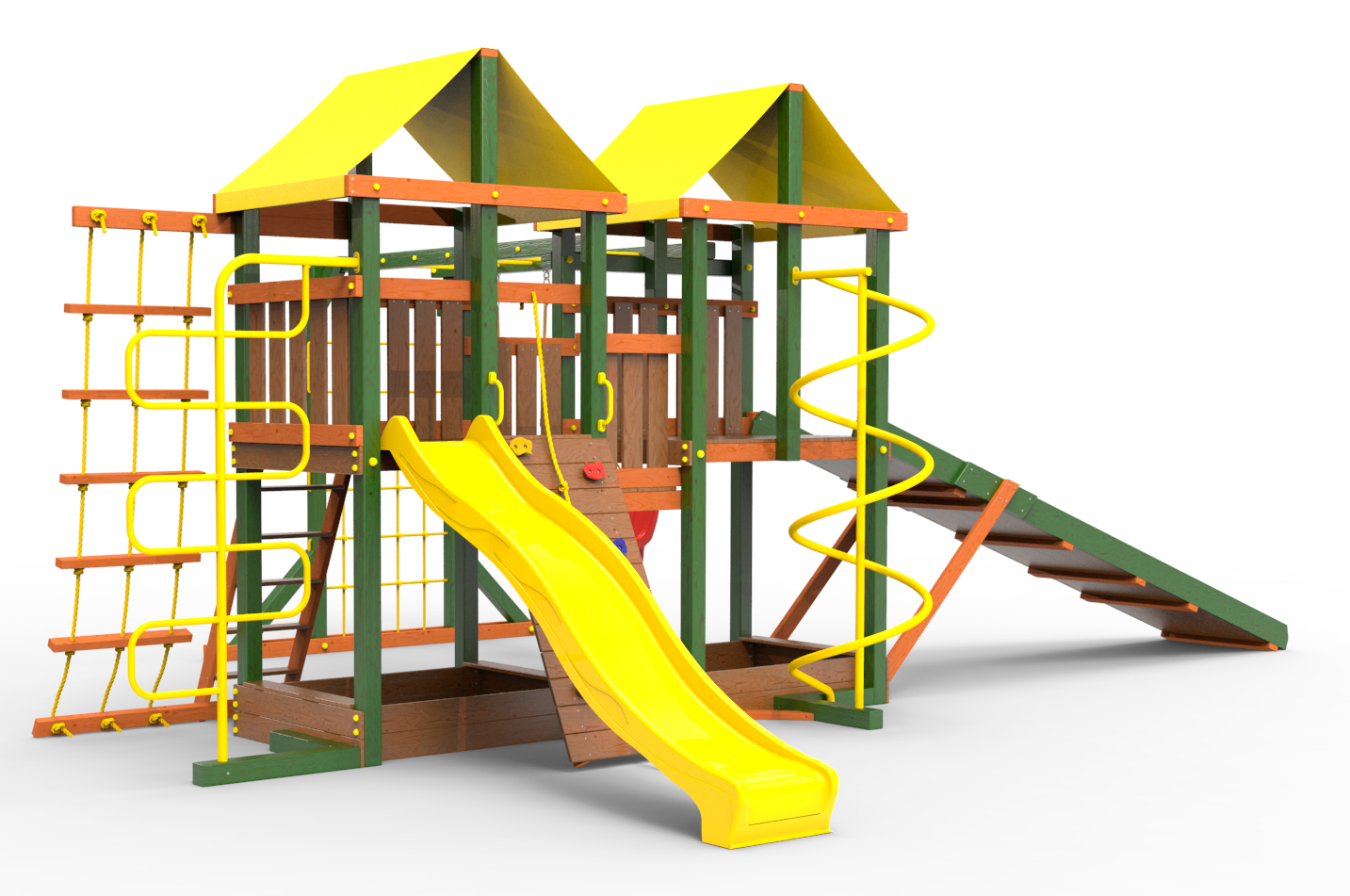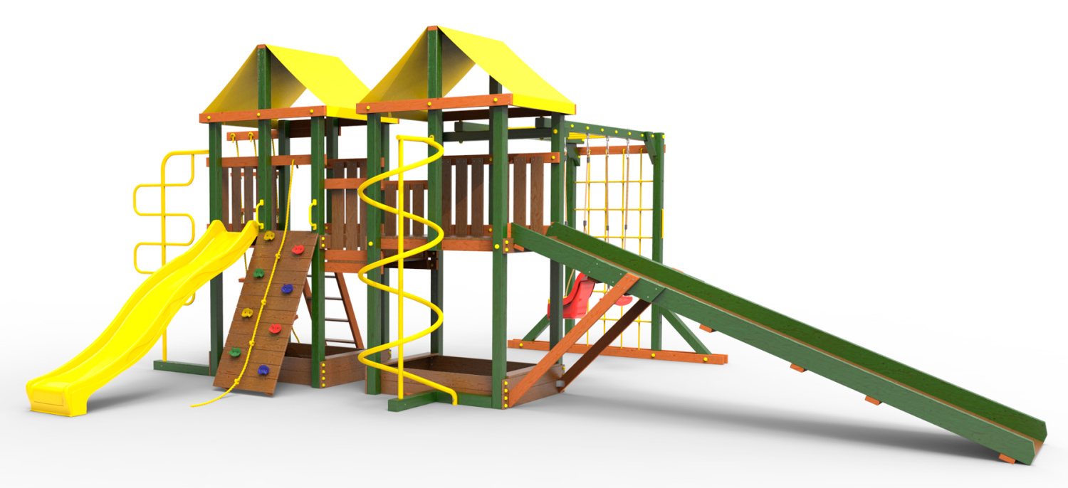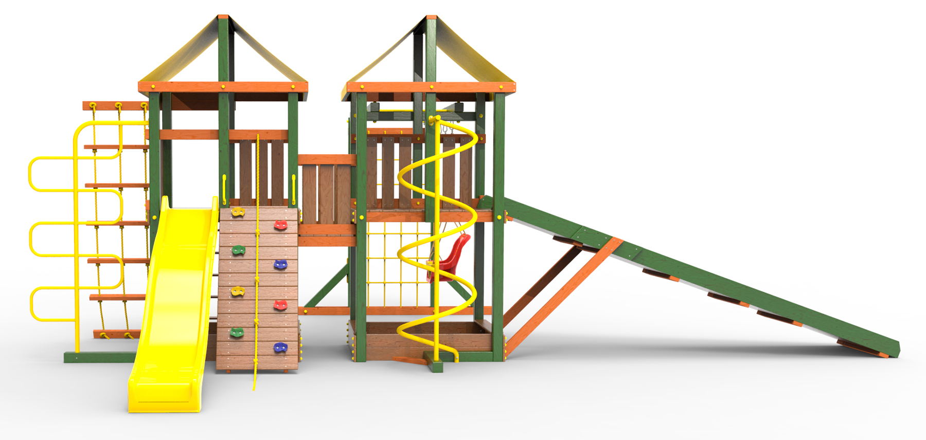 Обращаем Ваше внимание, что фактический цвет детской площадки может отличаться от представленных фото на сайте. Специфика окраски нетоксичными пропитками и красителями допускает отклонения в цветовой гамме отгружаемых изделий. Также обратите внимание, что фактический цвет может отличаться из-за цветопередачи устройства на котором Вы смотрите фото.
