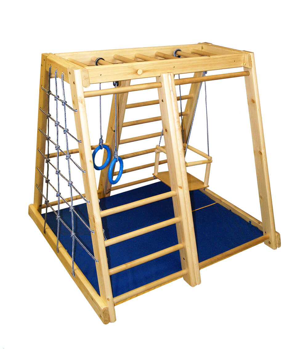 Комплекс выполнен из натуральных материалов. Все части имеют закругленные края и тщательно ошлифованы для большей безопасности малыша. По вашему желанию можно покрыть их специальным мебельным лаком – износоустойчивость повысится без потери функциональности.