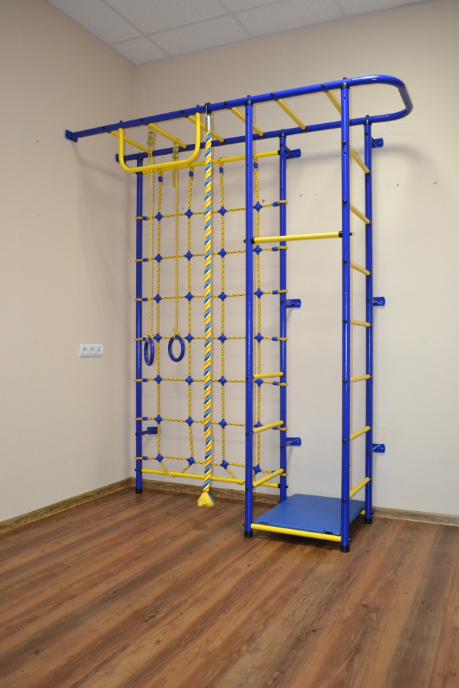 Комплектация: канат, кольца гимнастические, сетка для лазания, горка.