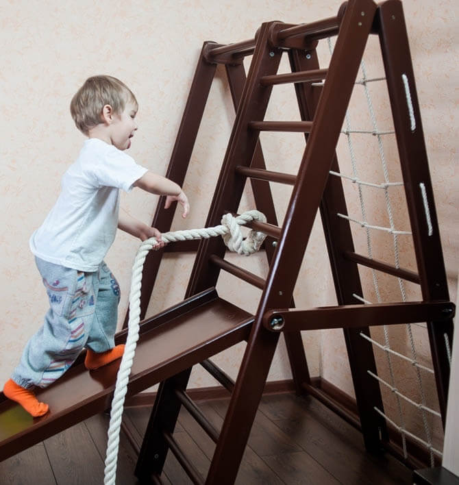 Идеально подходит для гармоничного физического развития ребенка в домашних условиях, поглощая неуёмную энергию ребенка. Легко складывается и разбирается для экономии места. Для экономии места в квартире при использовании горки имеются съемные перекладины в пустой секции.