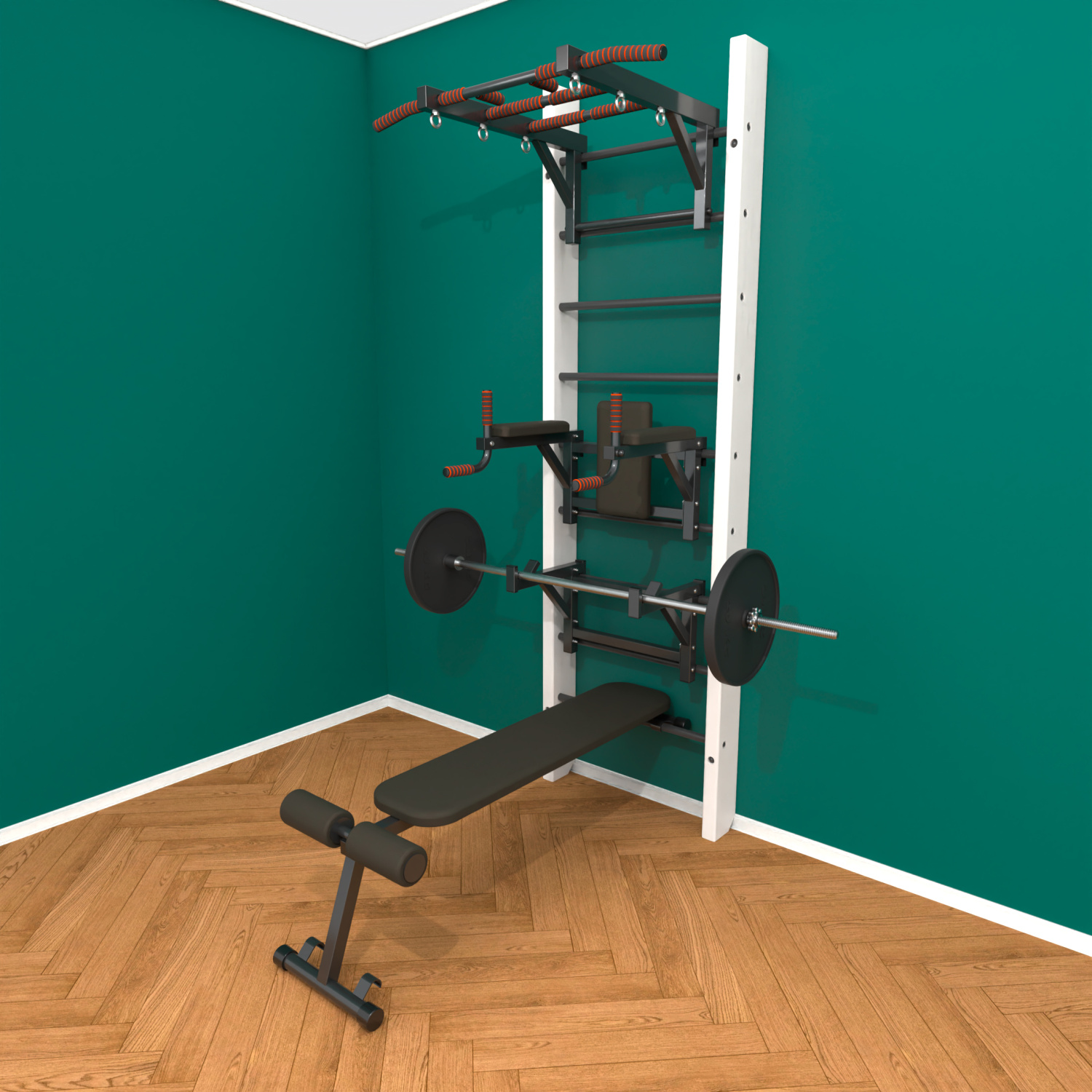Брашированная шведская стенка "Кастерли" White ТБCШ (Черные ступени) в Казани